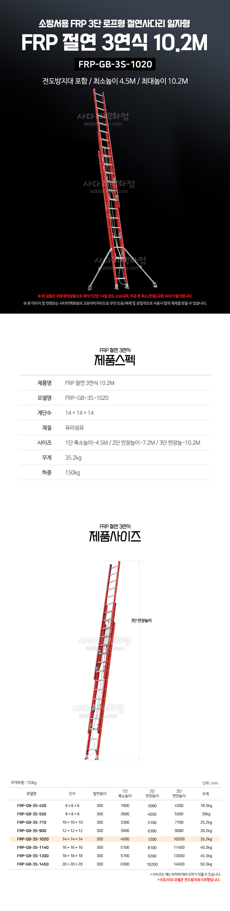 FRP-GB-3S-1020 소방서 구조용 FRP 3단 로프형 절연사다리 10.2M