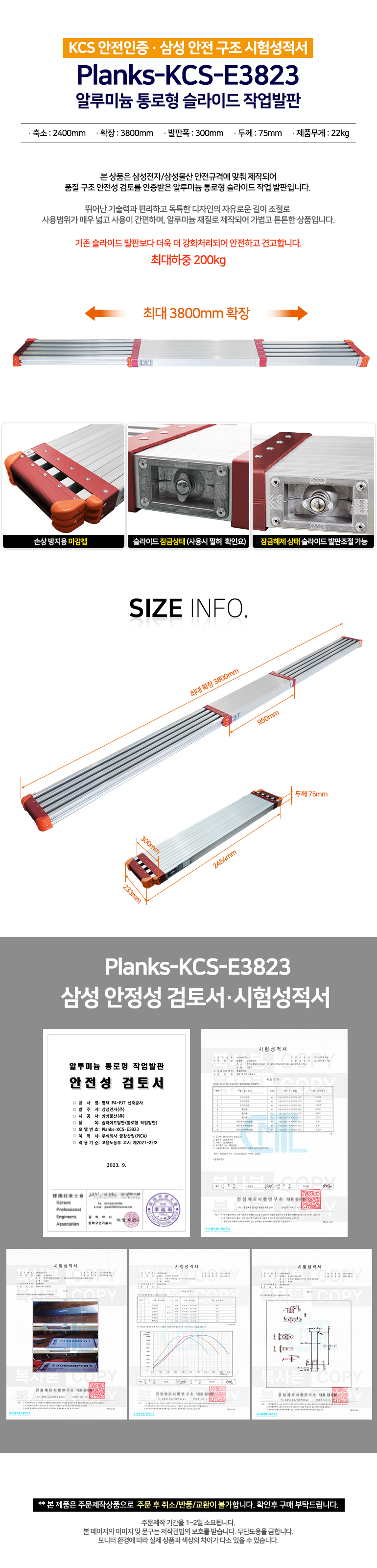 Planks-KCS-E3823 삼성인증 슬라이드 발판최장3.8m 축소2.4m /하중 200kg
