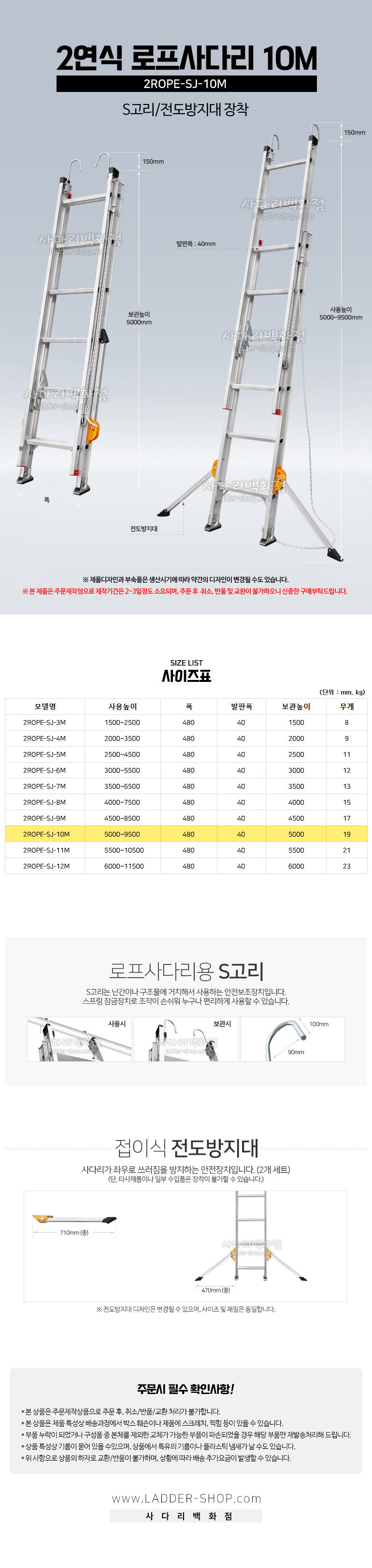 > 2ROPE-SJ-10M 2연식 로프사다리 10M (S고리/전도방지대 장착)